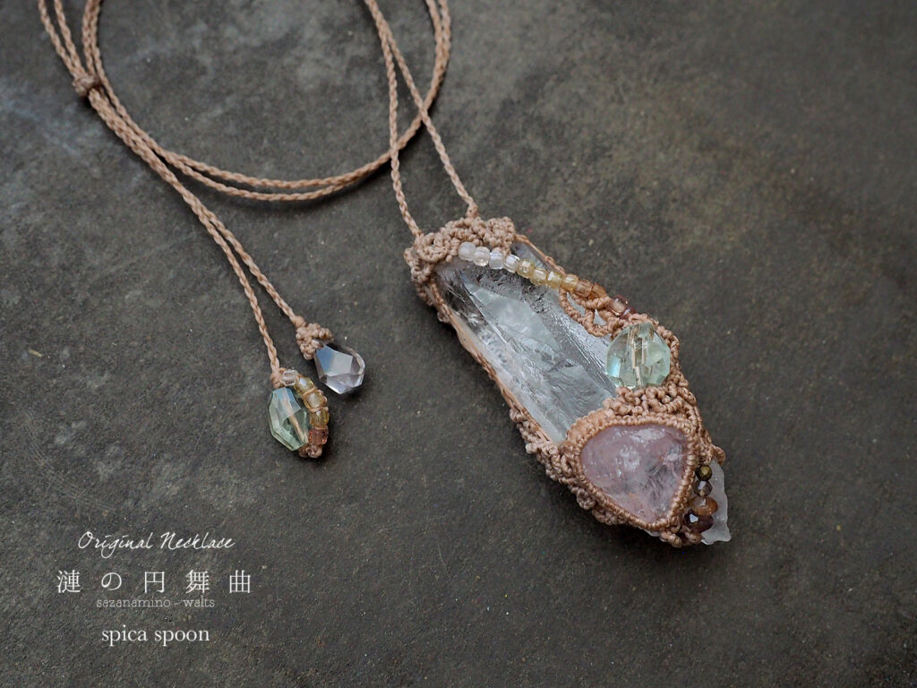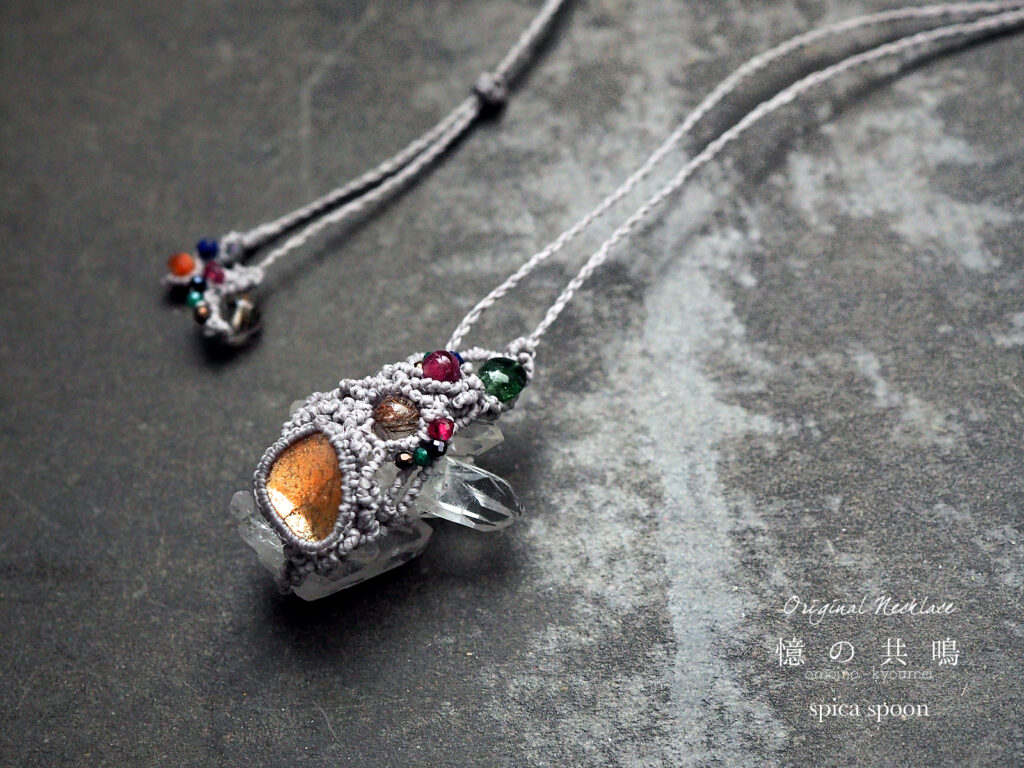トマスゴンサガのクラスターを包み込んだちょっと個性的な原石ネックレス。
