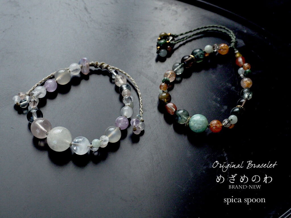 一時期ゴムブレスにハマっていた時にパーツでアクセントを入れると素敵だったので、めざめのわにも応用してみました◎