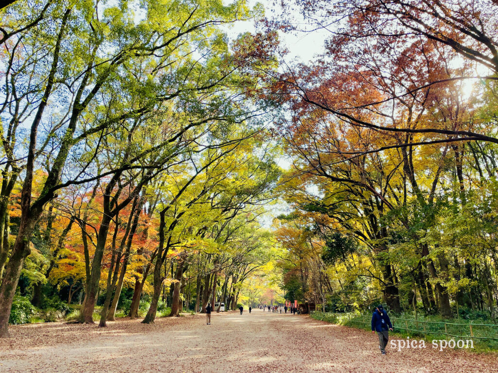 とはいえ、きれいに紅葉してる木もあって、いつもの馬車道も綺麗でした♡